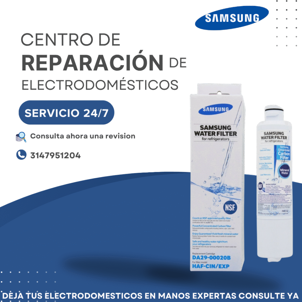 Contáctanos hoy mismo para cambiar el filtro de tu nevecon Samsung y mantener tu agua siempre pura y fresca.